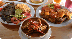 Mix grilledof beef, chicken, shrimp and marinated pork loin (carne adobada) served with rice, avocado and mixed salad.