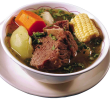 A latin style hen or beef cooked with mixed vegetables in a homemade sauce served with rice, homemade salad and beet cabbage.