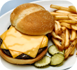 1/2 Lb. Black angus ground sirloin beef, served with lettuce, tomatoes, onions and french fries.
