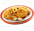 6 shrimps, 6 0z of chicken, 6 oz of beef, 6 oz of pork, 4 chicken wings, 3 garnachas, 2 tacos dorados, served with ranch dressing.